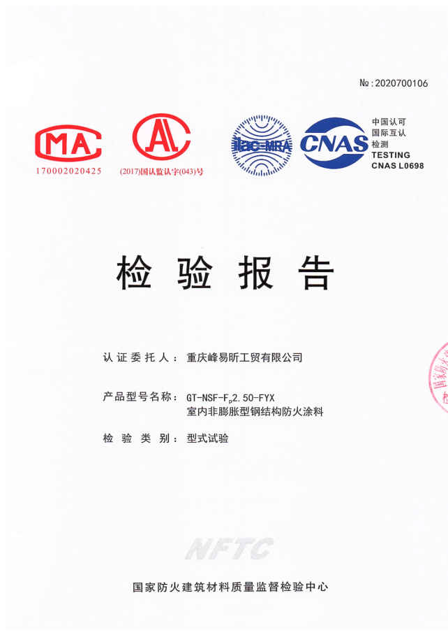 • 室內(nèi)非膨脹型鋼結(jié)構(gòu)防火涂料GT-NSF-Fp2.50-FYX